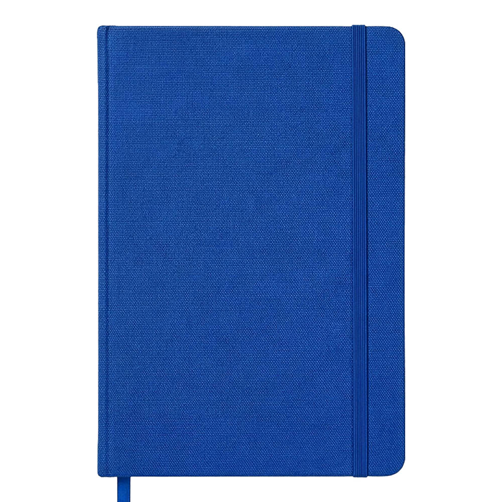 Notizbuch mit Hardcover aus R-PET. Elastikbandverschluss und Lesezeichenband aus Satin