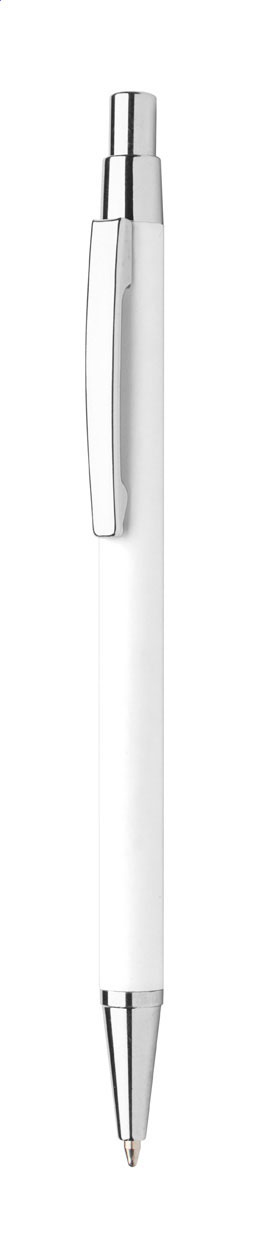 Aluminium-Kugelschreiber mit gummierter Oberfläche und Spezialbeschichtung für eine Spiegelgravur, blauschreibend.