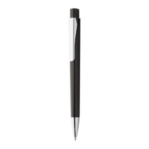 Kunststoff-Kugelschreiber mit silbernem Clip und verchromter Spitze, blauschreibend.
