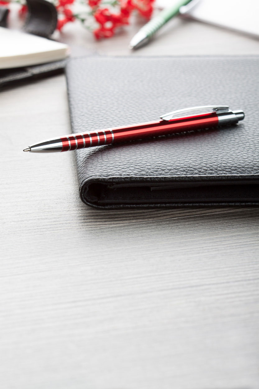 Aluminium-Kugelschreiber mit verchromten Clip und Spitze, blauschreibend.