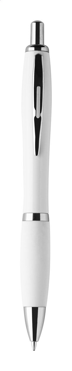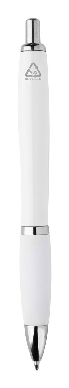 Kugelschreiber aus recyceltem ABS-Kunststoff mit farblich passendem Griffstück und verchromten Teilen, blauschreibend.