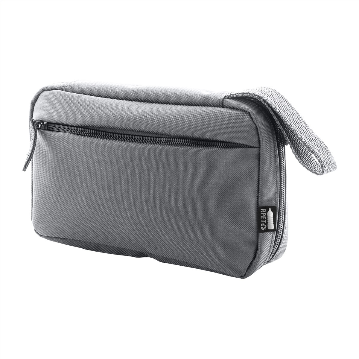 RPET-Kabeltasche mit Reißverschluss, mit Netz-Innenfächern und Reißverschlusstasche vorne. Material: 600D RPET-Polyester. Mit RPET-Label.
