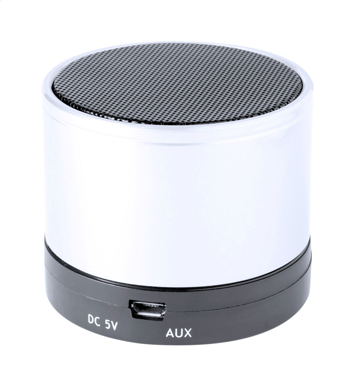 Kabelloser Lautsprecher in einem Gehäuse aus recyceltem Aluminium und recyceltem ABS. Mit Radio, MP3-Player, Freisprechfunktion und eingebautem, wiederaufladbarem Akku (300 mAh). Inklusive USB-Ladegerät und Aux-In-Kabel.