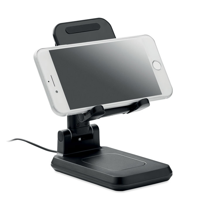 Induktive 15W Ladestation mit ausziehbarem und klappbarem Smartphone-Halter. Ausgang: DC 9V/1,67A (15W) für schnelles Aufladen. Kompatibel mit den neuesten Android Smartphones, iPhone ® 8, X und neueren Modellen.