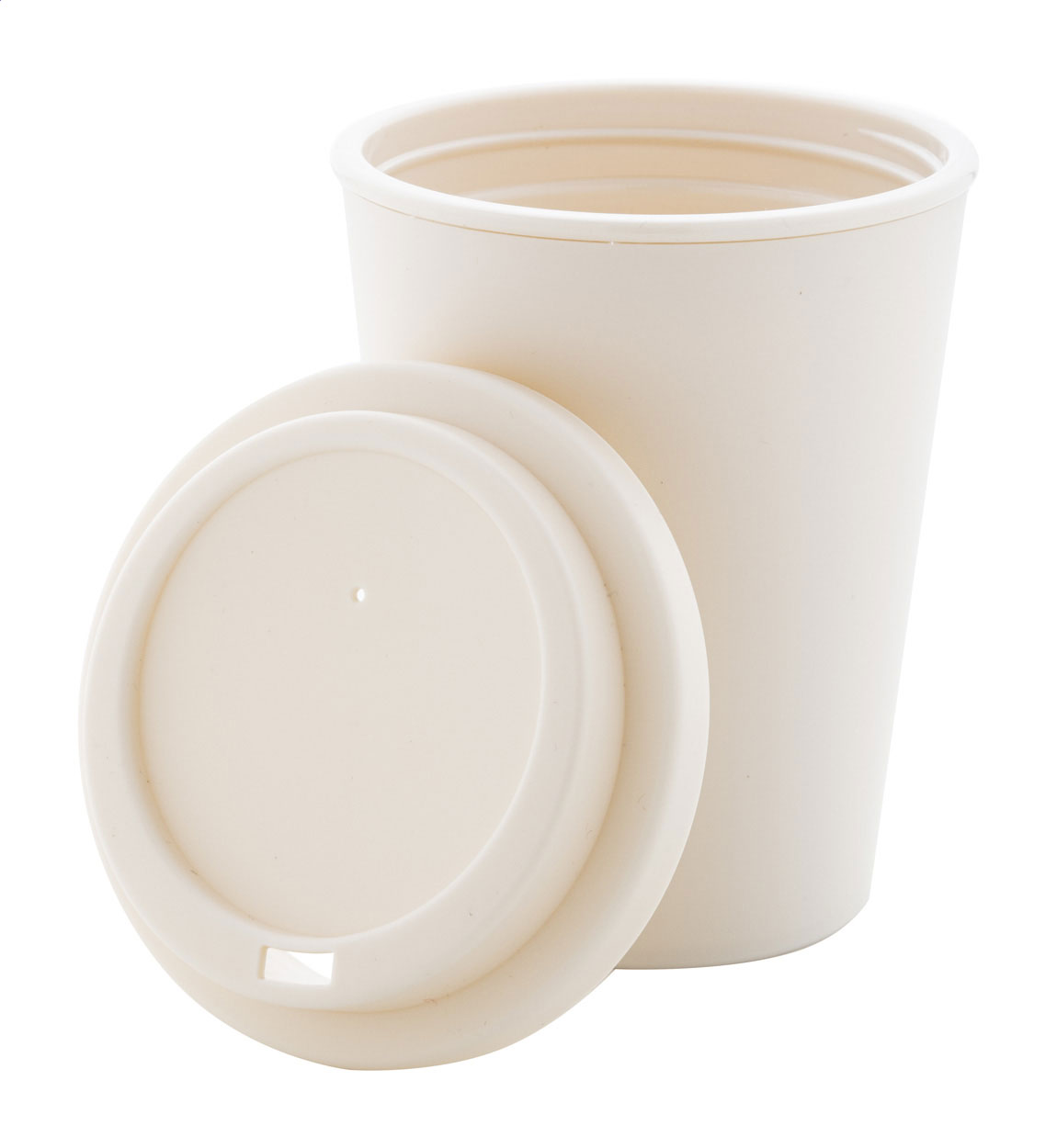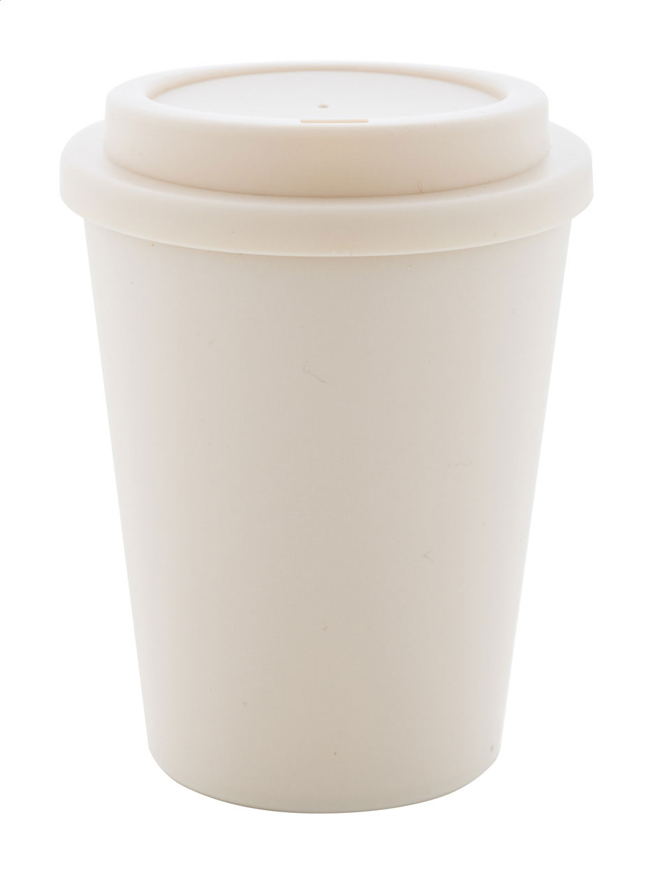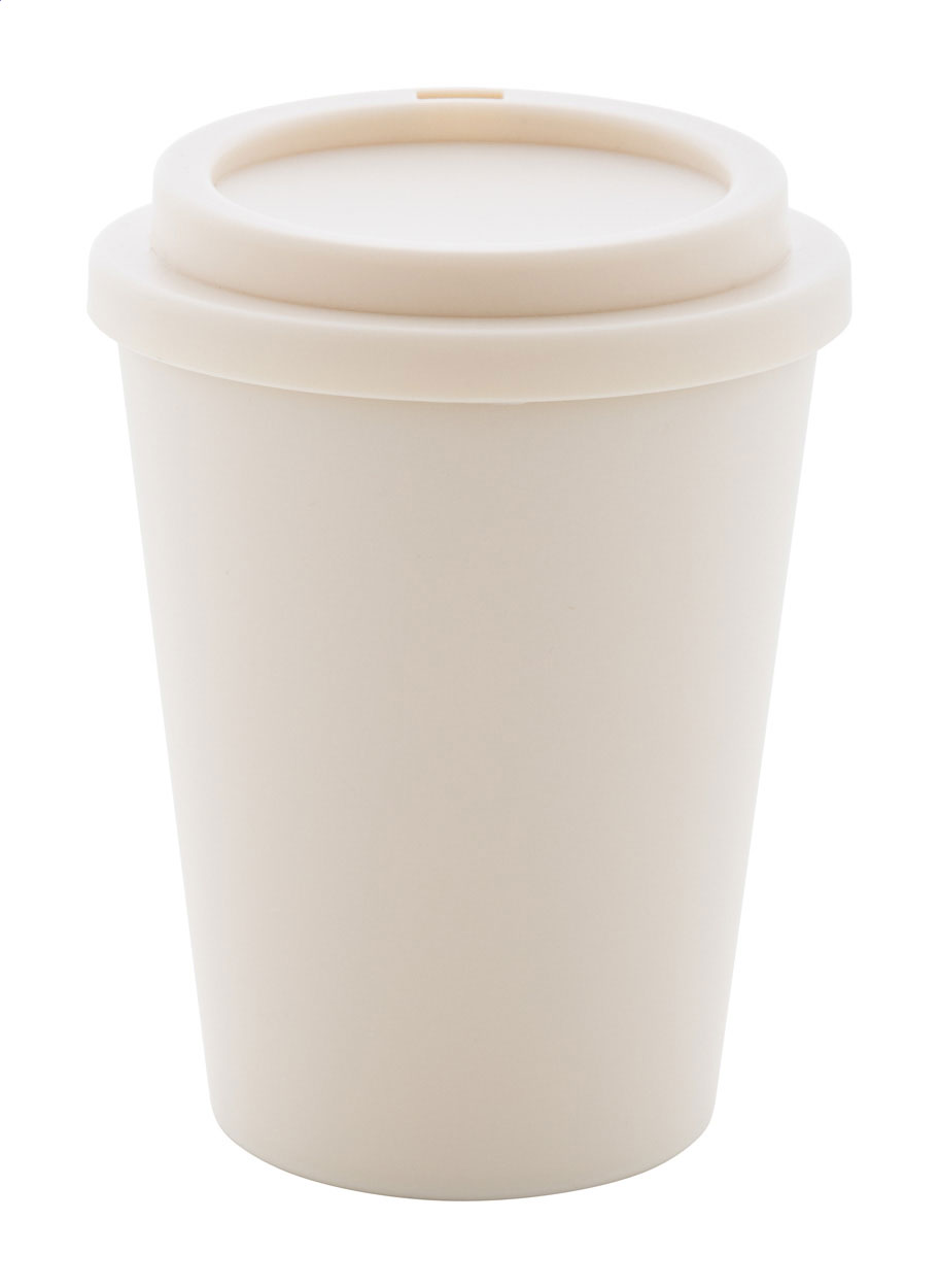 Doppelwandiger, isolierter Thermobecher aus PP-Kunststoff mit Trinkdeckel. Füllmenge: 300 ml.