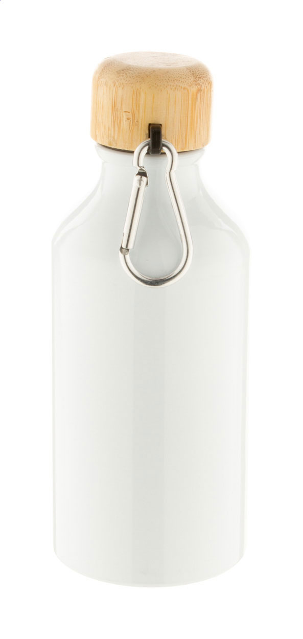 Sportflasche aus Aluminium mit Bambusdeckel und Karabiner. Füllmenge: 400 ml.