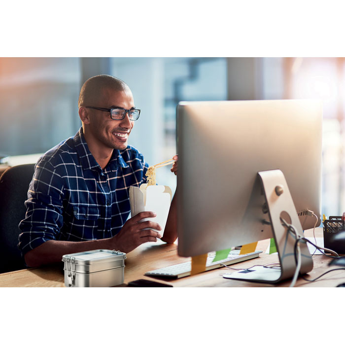 Lunchbox aus Edelstahl mit 2 Ebenen und starken Halteklammern. Füllmenge: 1200 ml.