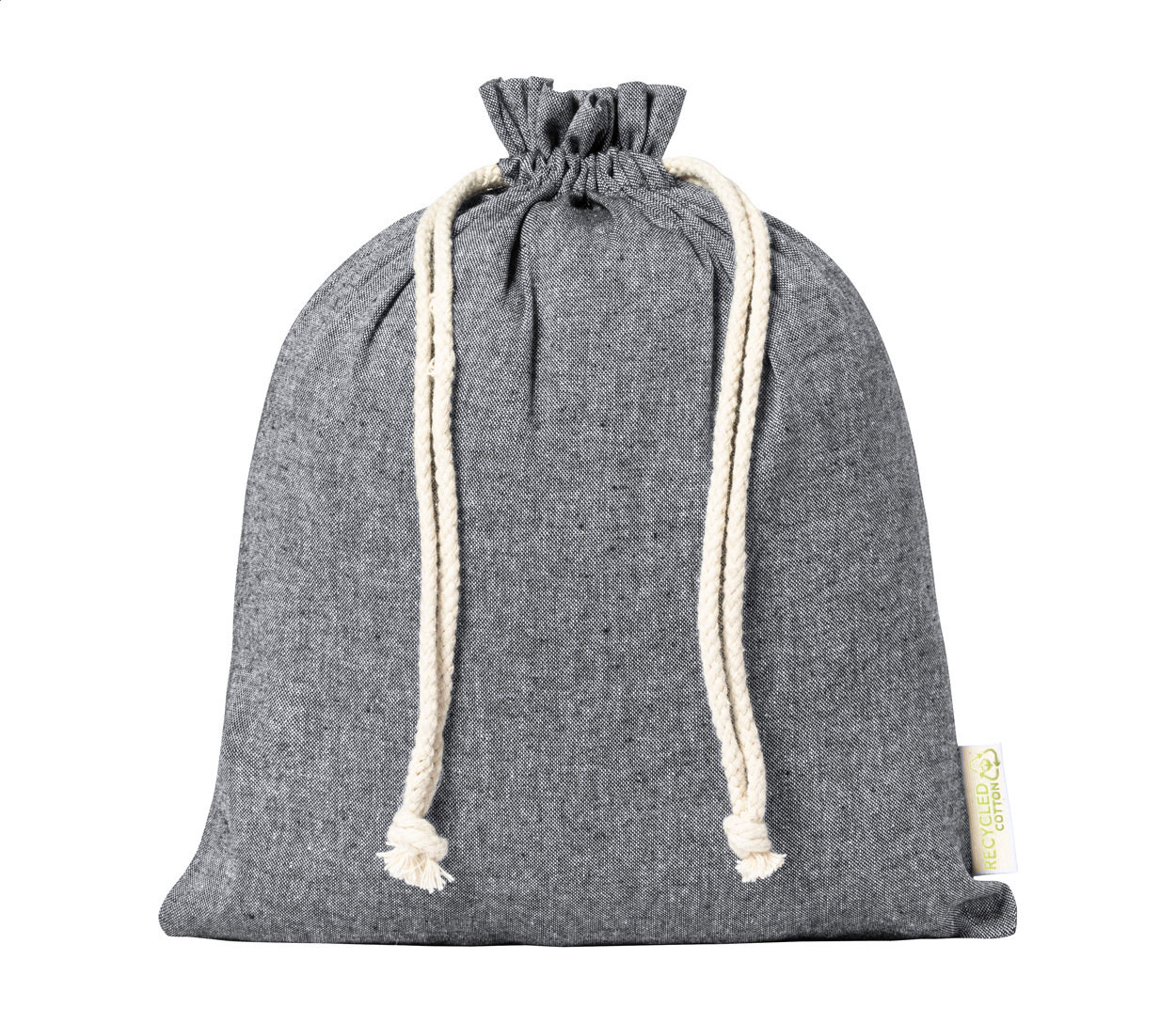 Wiederverwendbarer Obst-/Gemüsebeutel aus recycelter Baumwolle mit Kordelverschluss, Material 100 % recycelte Baumwolle, 120 g/m².