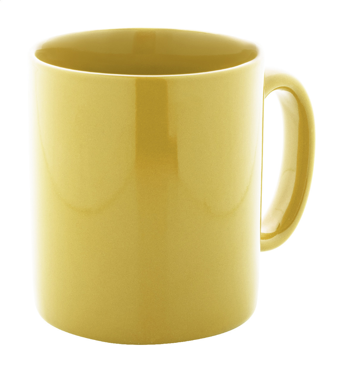 Klassischer Keramikbecher mit farbiger Hochglanzoberfläche. Füllmenge: 300 ml. Einzeln in Kraftpapierbox.