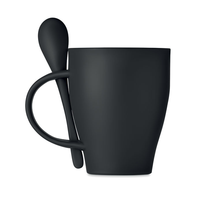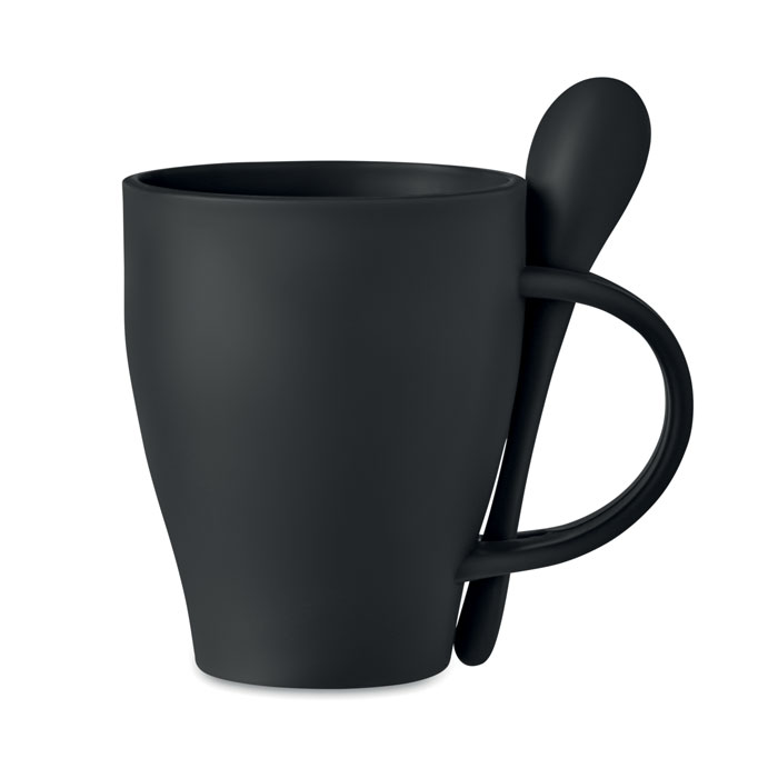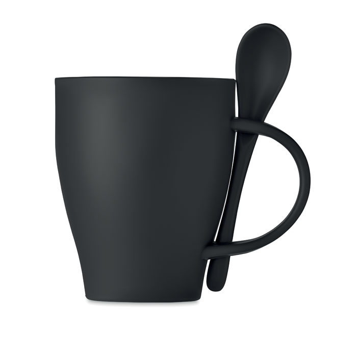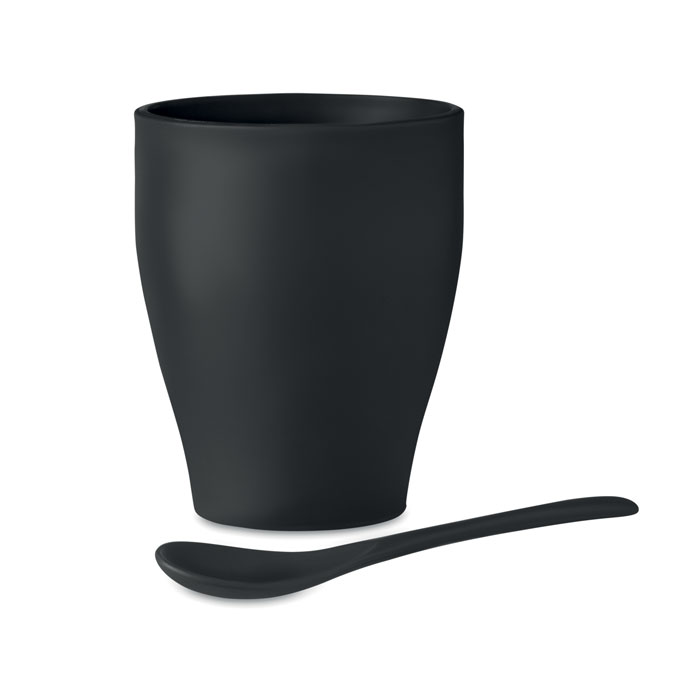 Wiederverwendbarer Kaffeebecher mit Löffel aus PP. Füllmenge: 300 ml.