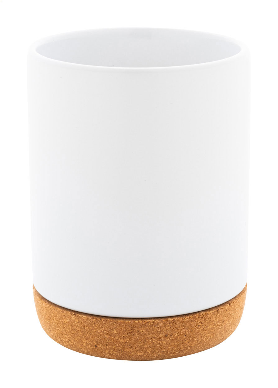 Hochwertiger Keramikbecher mit Naturkorkboden. Mit matter Außenseite und glänzender Innenseite. Füllmenge: 280 ml. Einzeln in Kraftpapierbox.
