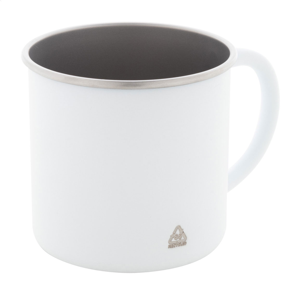Einwandige Tasse aus recyceltem Edelstahl. Füllmenge: 300 ml. Einzeln in Kraftpapierbox.